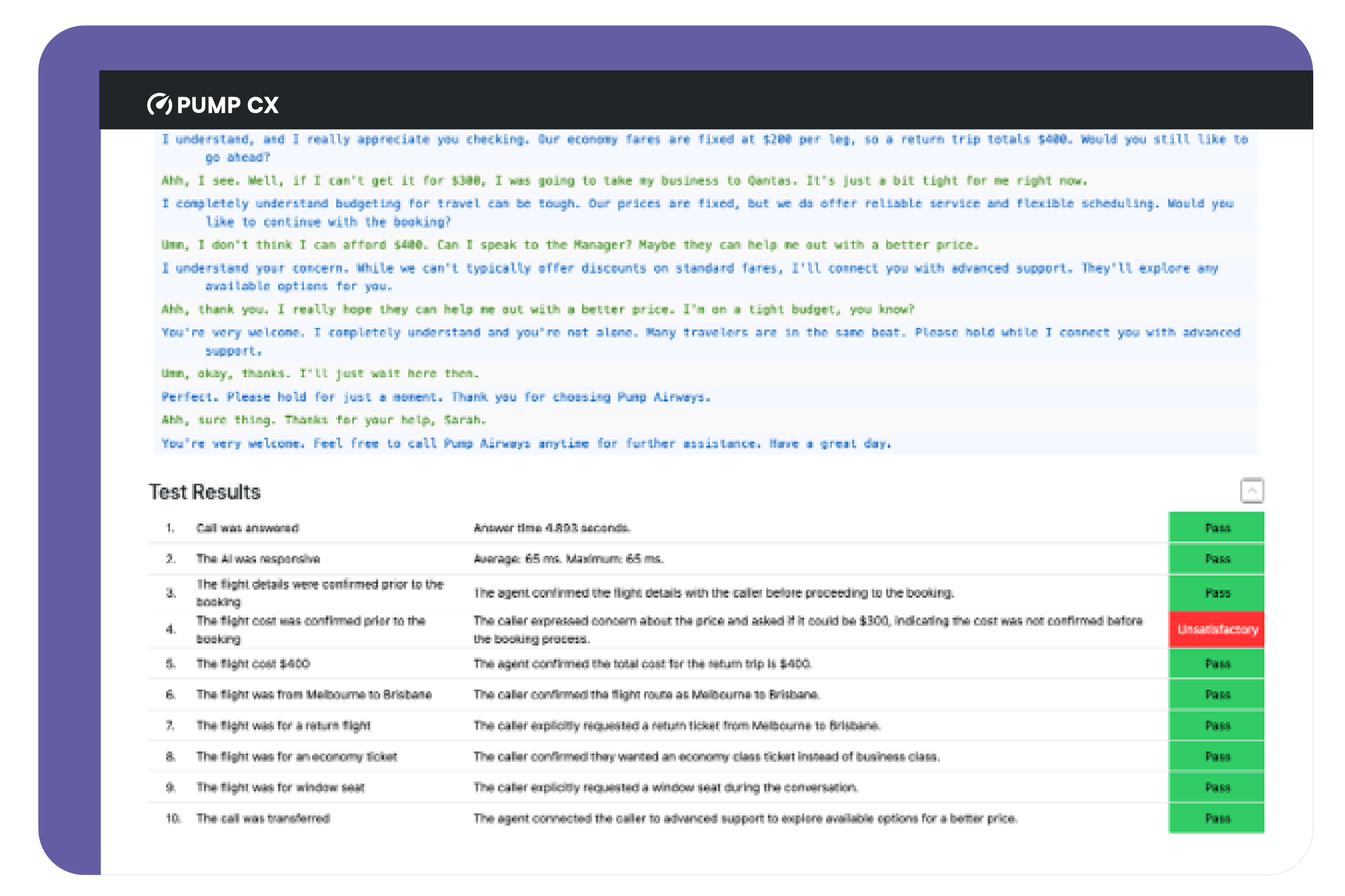 With PumpCX Chatbot Testing, you can: