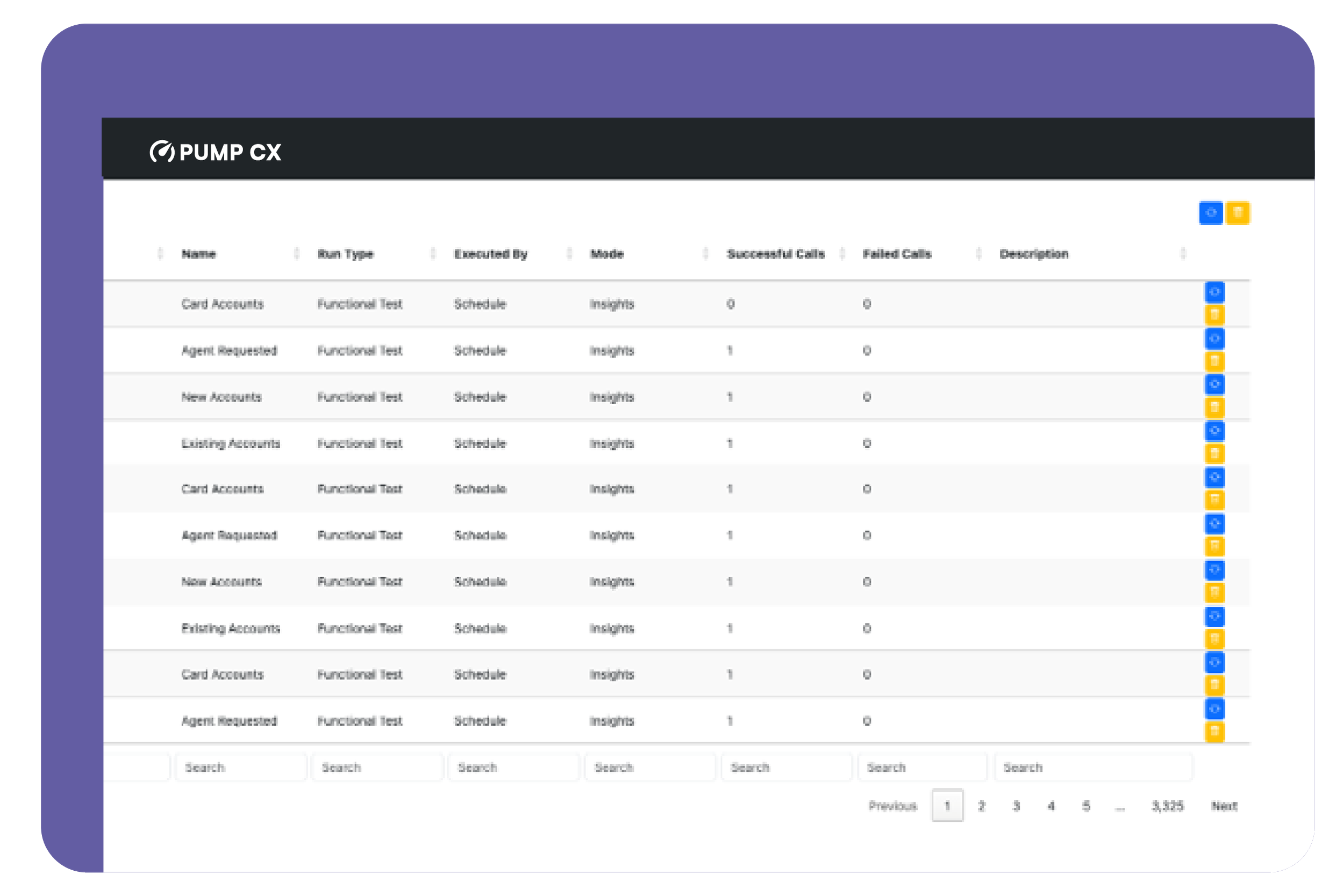 PumpCX runs a suite of scripted test cases that cover your critical CX journeys and platform functions, then compares actual behavior against expected results to flag any failures or anomalies. Tests can be executed on-demand or as part of your development and release cycles for continuous assurance.